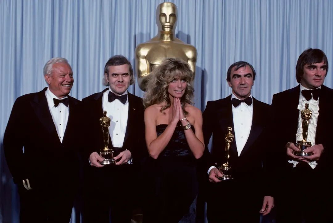 頒獎(jiǎng)嘉賓哈羅德·拉塞爾、女演員法拉·弗西以及視覺效果得獎(jiǎng)?wù)叩つ崴埂ぐ瑢?、卡羅·蘭巴爾迪、布萊恩·約翰遜